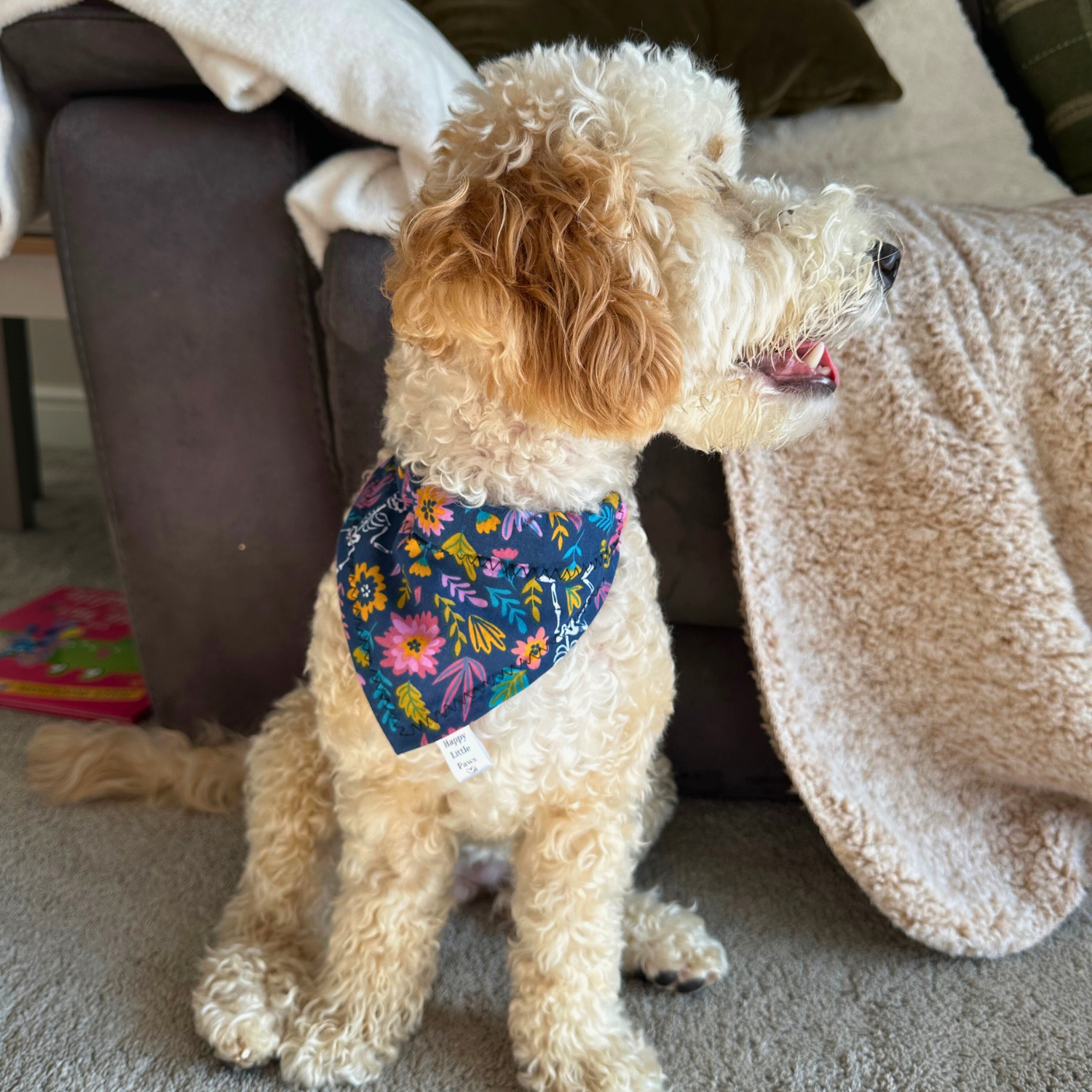 - Our Small scrunchie bandanas elastic measures around 12cm when fully stretched. Ideal for up to Cockapoo sized dogs.